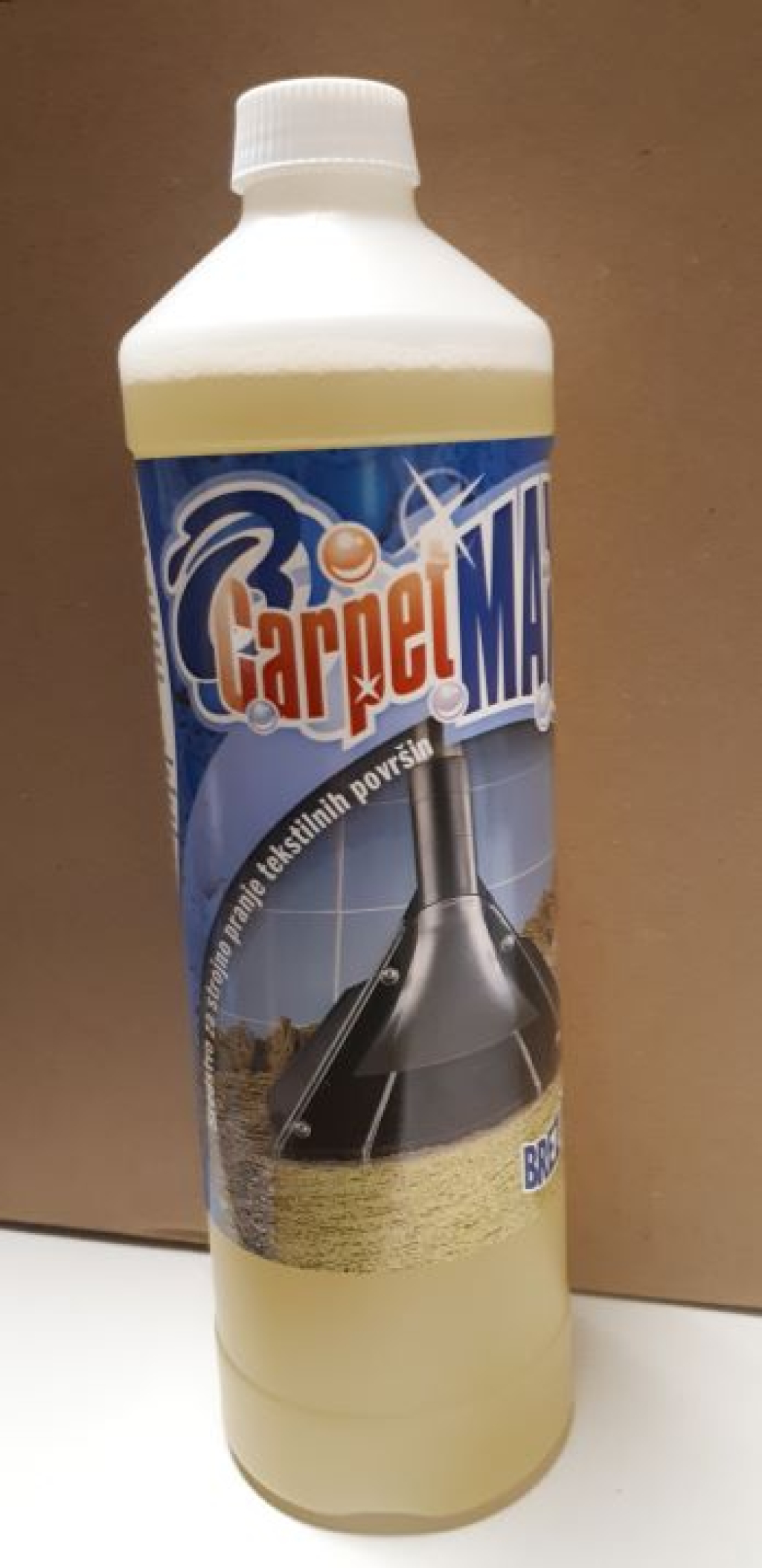 Čistilo Carpet max je koncentrirano čistilo, ki se ne peni. Namenjeno je ekstrakcijskemu pranju vseh vrst tekstilnih površin, preprog, tapisona, oblazinjenega pohištva, vzmetnic, itd. Uporablja se v sesalnikih, ki delujejo na razpršilno- ekstrakcijski metodi. Čisti globinsko in hkrati osvežuje čiščeno površino.